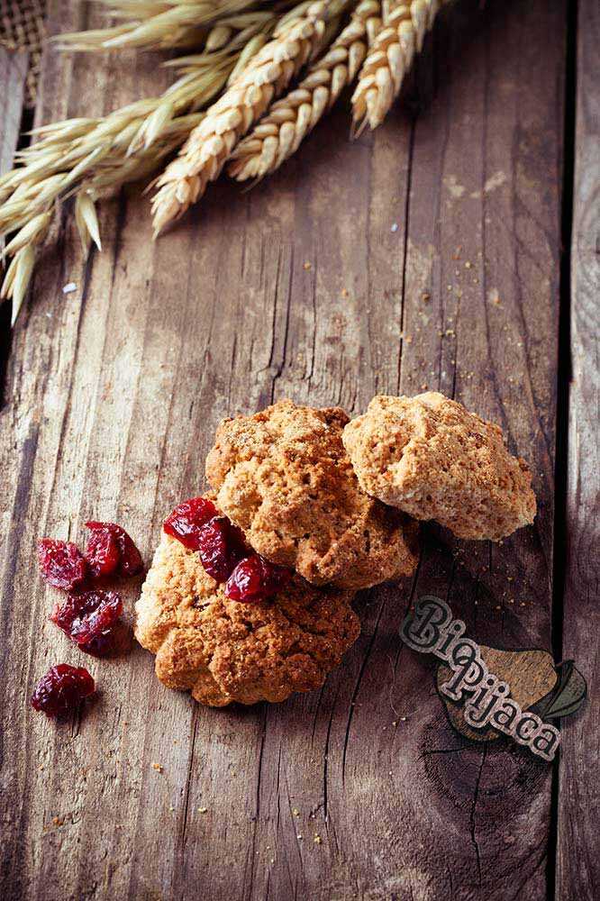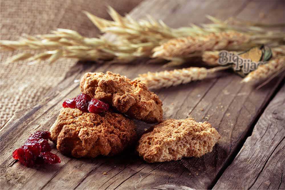 Integralno pšenično brašno, biljna mast, fruktoza, sorbitol, brusnica (8%), sojin lecitin, sredstva za dizanje testa (amonijum – bikarbonat, natrijum – bikarbonat)- Bez dodatka šećera – saharoze, bez mleka i jaja – bez holesterola.