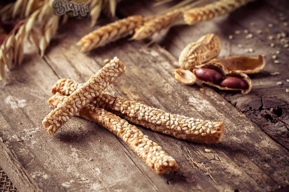 - Integralno pšenično brašno, belo vino, biljno ulje, brašno T-850, so, susam, kikiriki.